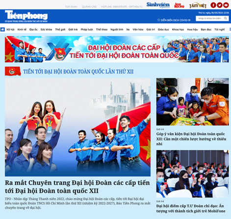 Nhân dịp Tháng Thanh niên 2022, chào mừng Đại hội Đoàn các cấp, tiến tới Đại hội đại biểu toàn quốc Đoàn TNCS Hồ Chí Minh lần thứ XII (nhiệm kỳ 2022-2027), Báo Tiền Phong ra mắt chuyên trang về đại hội.