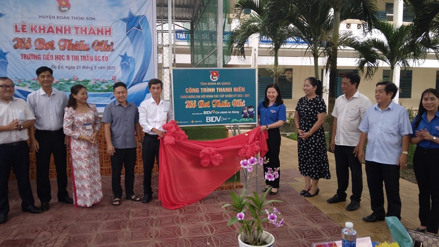 Nhằm lập thành tích chào mừng Đại hội đại biểu Đoàn thanh niên cộng sản Hồ Chí Minh tỉnh An Giang lần thứ XI, Huyện đoàn Thoại Sơn đã phối hợp vận động đoàn khối cơ quan và doanh nghiệp tỉnh và ngân hàng Thương mại cổ phần Đầu tư và phát triển Việt Nam (BIDV) chi nhánh An Giang xây dựng 01 điểm tập luyện thể dục thể thao ngoài trời tại xã Định Thành trị giá 24 triệu đồng và 01 hồ bơi cho trẻ em tại trường Tiểu học B thị trấn Óc Eo trị giá 146,5 triệu đồng.