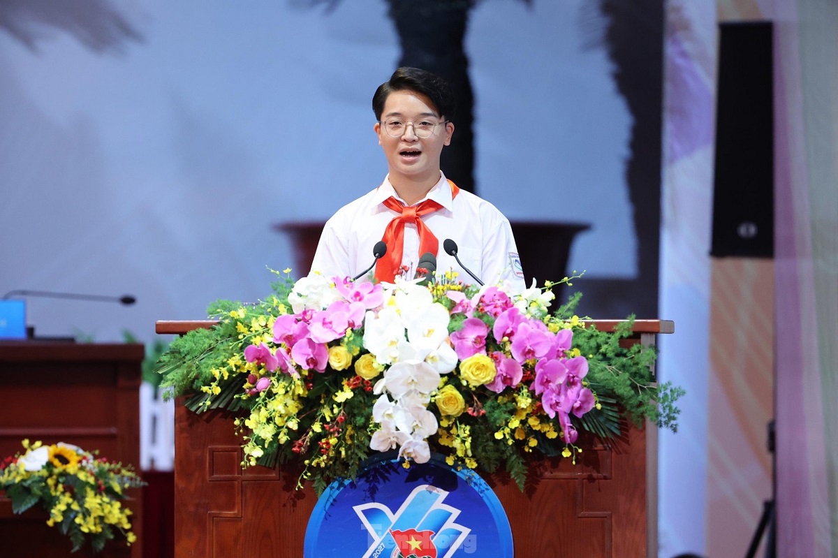Đại diện thiếu nhi Thủ đô thay mặt thiếu nhi cả nước chúc mừng Đại hội.