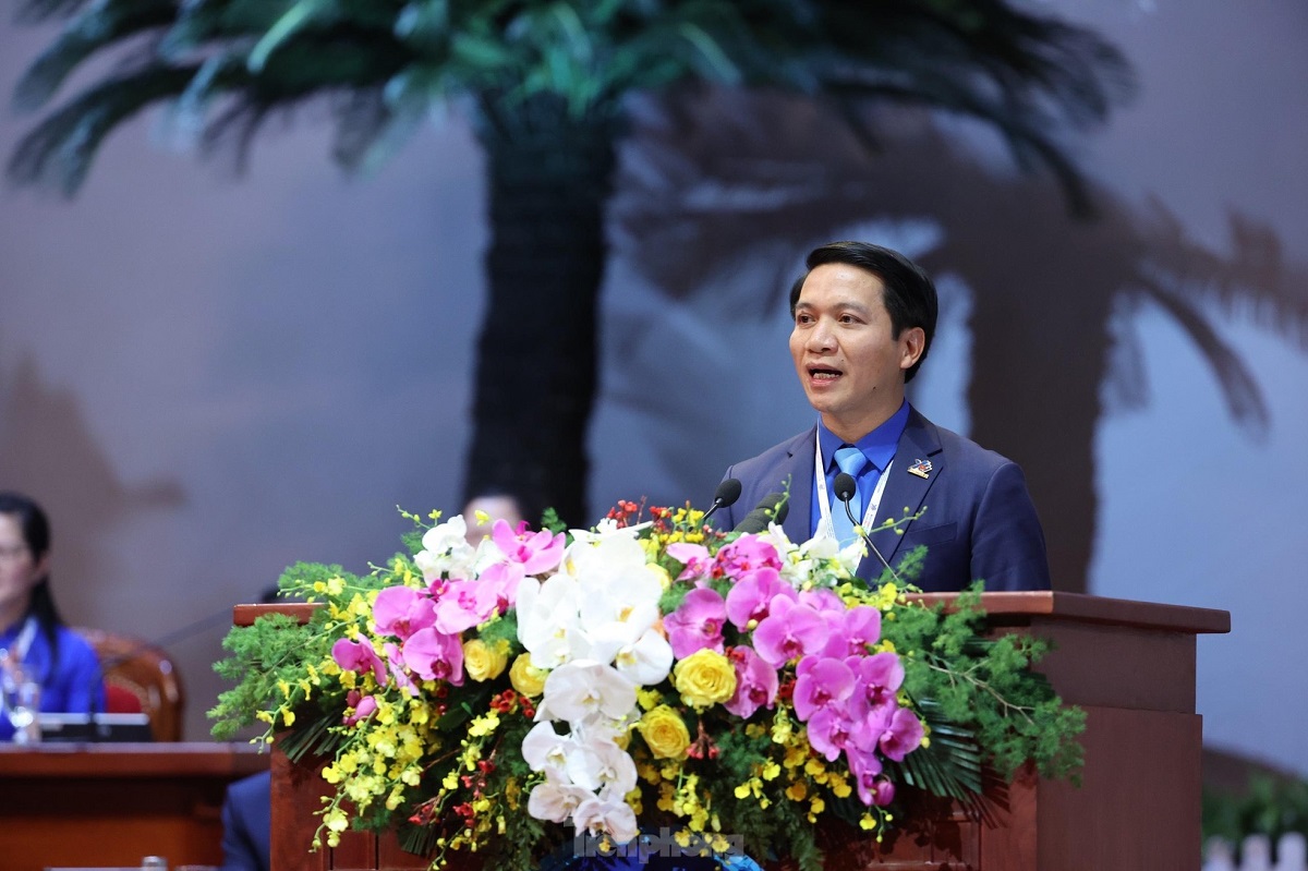 Anh Bùi Quang Huy, Ủy viên dự khuyết T.Ư Đảng, Bí thư thứ nhất T.Ư Đoàn khóa XI trình bày tóm tắt Báo cáo Chính trị trình Đại hội Đoàn toàn quốc lần thứ XII.