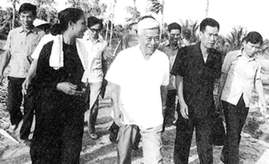 Đồng chí Phạm Hùng thăm và làm việc với trại cải tạo K20 Bến Tre năm 1982. Ảnh tư liệu.
