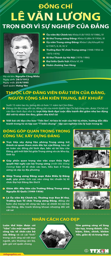 Trọn cuộc đời gắn bó, đem hết trí tuệ, sức lực để cống hiến cho Đảng và cách mạng Việt Nam, đồng chí Lê Văn Lương trở thành tấm gương sáng về ý chí cách mạng, tinh thần vượt khó, sẵn sàng chiến đấu hy sinh vì lý tưởng của Đảng, vì tương lai tươi sáng của cách mạng cho các thế hệ sau học tập, noi theo./.