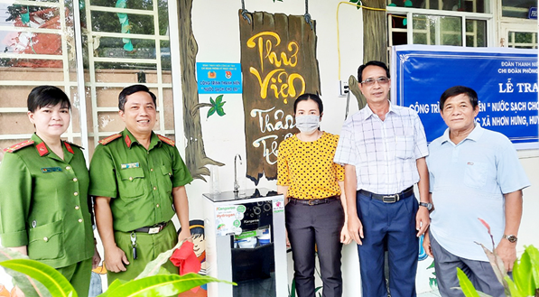 Sáng 23-3, Chi đoàn Phòng Kỹ thuật hình sự Công an An Giang phối hợp Đảng ủy, UBND xã Nhơn Hưng (huyện Tịnh Biên) tổ chức trao tặng Công trình thanh niên “Nước sạch cho em” tại Trường Tiểu học “B” Nhơn Hưng.