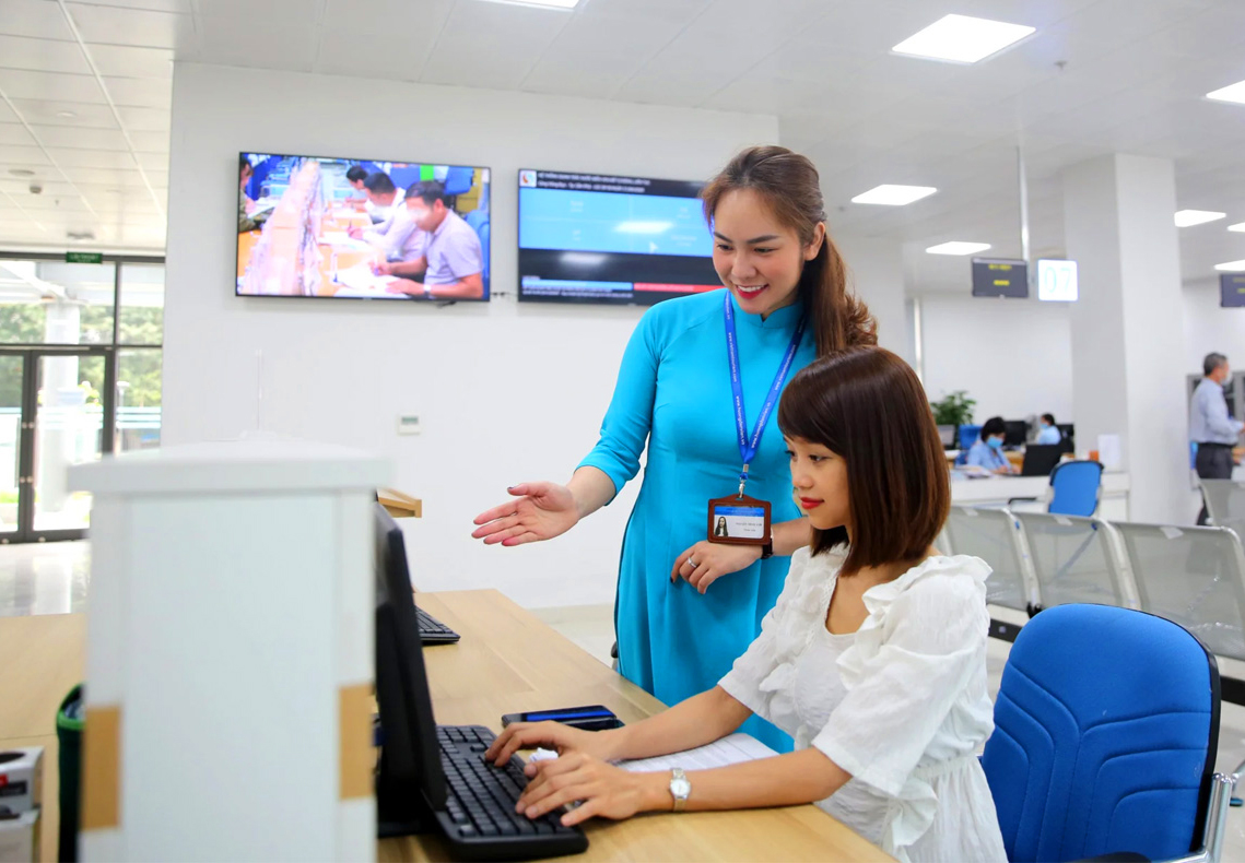 Cán bộ, công chức hướng dẫn người dân và doanh nghiệp (Ảnh: baoquangninh.com.vn)