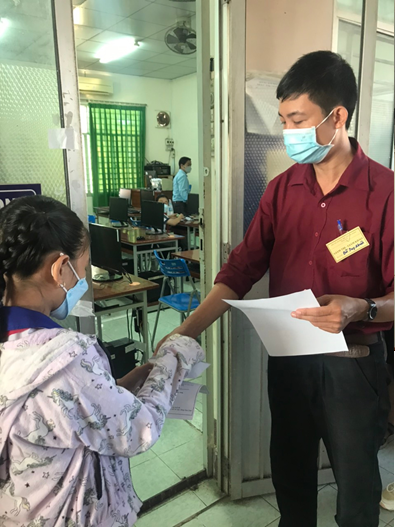 Giám thị kiểm tra thủ tục vào phòng thi