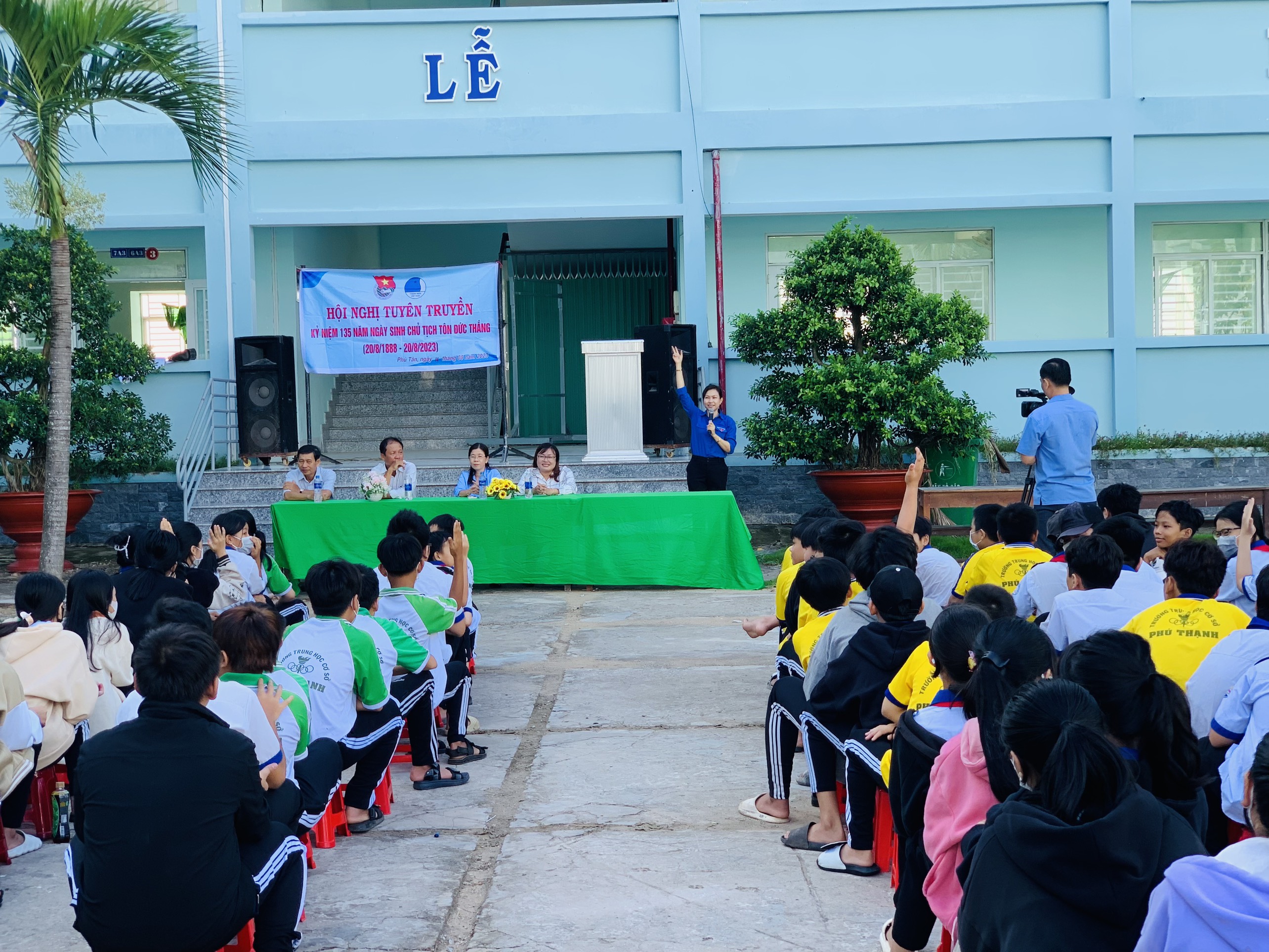 Tại đây, các đại biểu cùng nhau ôn lại cuộc đời hoạt động cách mạng và những cống hiến to lớn của Bác Tôn; bày tỏ lòng biết ơn sâu sắc Chủ tịch Tôn Đức Thắng - một chiến sĩ cách mạng kiên trung của phong trào cộng sản và công nhân quốc tế, người bạn chiến đấu thân thiết của Chủ tịch Hồ Chí Minh vĩ đại. Đây còn là dịp để mỗi cán bộ Đoàn, ĐVTN, học sinh nêu cao tinh thần học tập, làm theo tấm gương đạo đức của Chủ tịch Tôn Đức Thắng - một tấm gương đạo đức cách mạng suốt đời cần, kiệm, liêm, chính; suốt đời hết lòng, hết sức phục vụ cách mạng, phụng sự nhân dân. Bên cạnh, các bạn ĐVTN, học sinh còn được tham gia trả lời các câu hỏi đố vui có thưởng liên quan đến những nội dung vừa được tuyên truyền. Tự hào về sự nghiệp và đạo đức cách mạng của Chủ tịch Tôn Đức Thắng, tự hào được học tập và làm việc trên quê hương mang tên Bác Tôn, tuổi trẻ Phú Tân sẽ luôn phát huy tinh thần xung kích, tình nguyện, sáng tạo tham gia phát triển kinh tế xã hội, xây dựng quê hương Phú Tân ngày càng giàu đẹp.