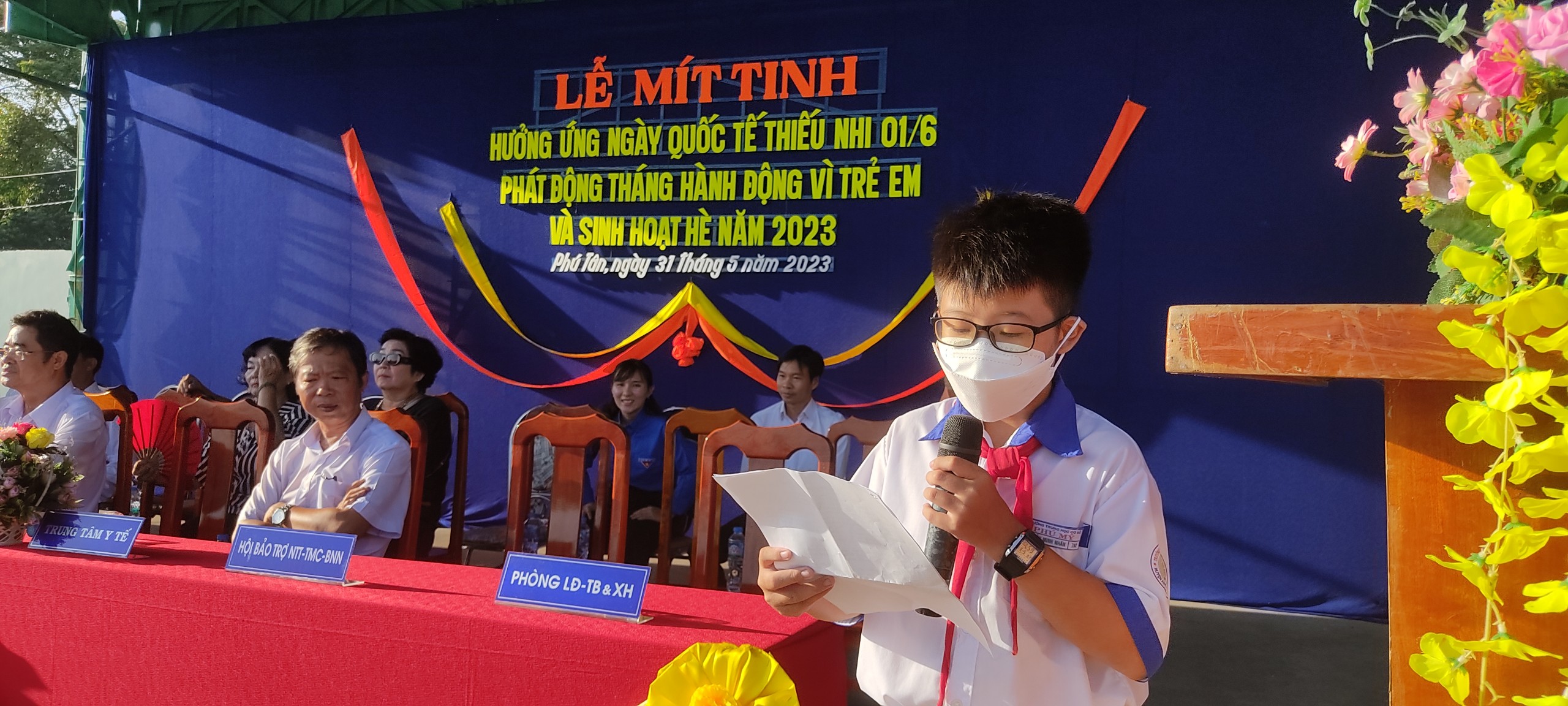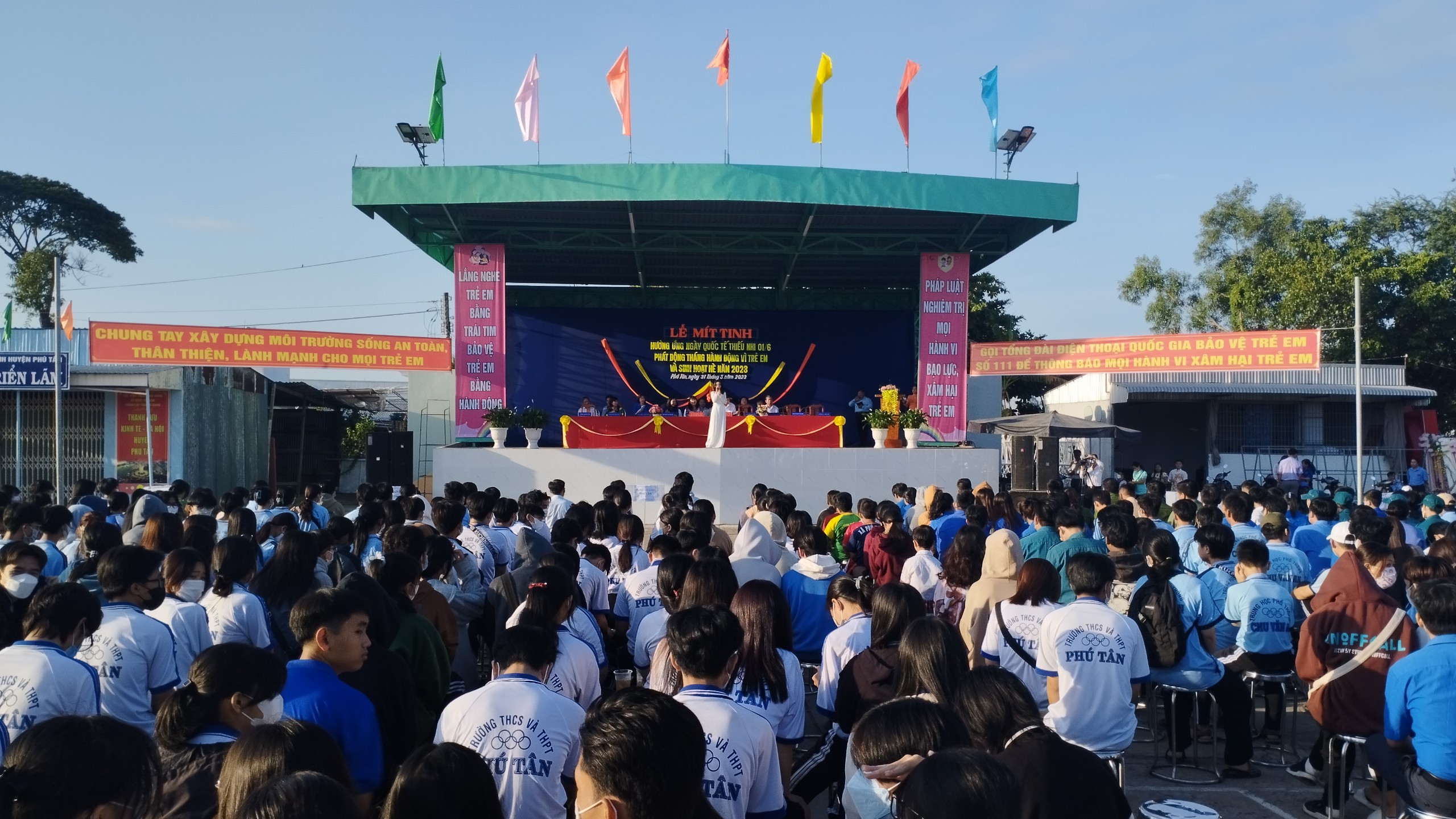 Hòa chung không khí tưng bừng, phấn khởi của thiếu nhi cả nước, hưởng ứng Tháng hành động vì trẻ em, sáng ngày 31/5/2023, Huyện Đoàn Phú Tân phối hợp tổ chức Lễ Mít tinh hưởng ứng Ngày Quốc tế Thiếu nhi 01/6, phát động Tháng hành động Vì trẻ em với chủ đề “Chung tay giảm thiểu tổn hại trẻ em” và ra quân Sinh hoạt hè với chủ đề “Tạo môi trường tốt nhất cho trẻ em được bảo vệ và phát triển toàn diện”.