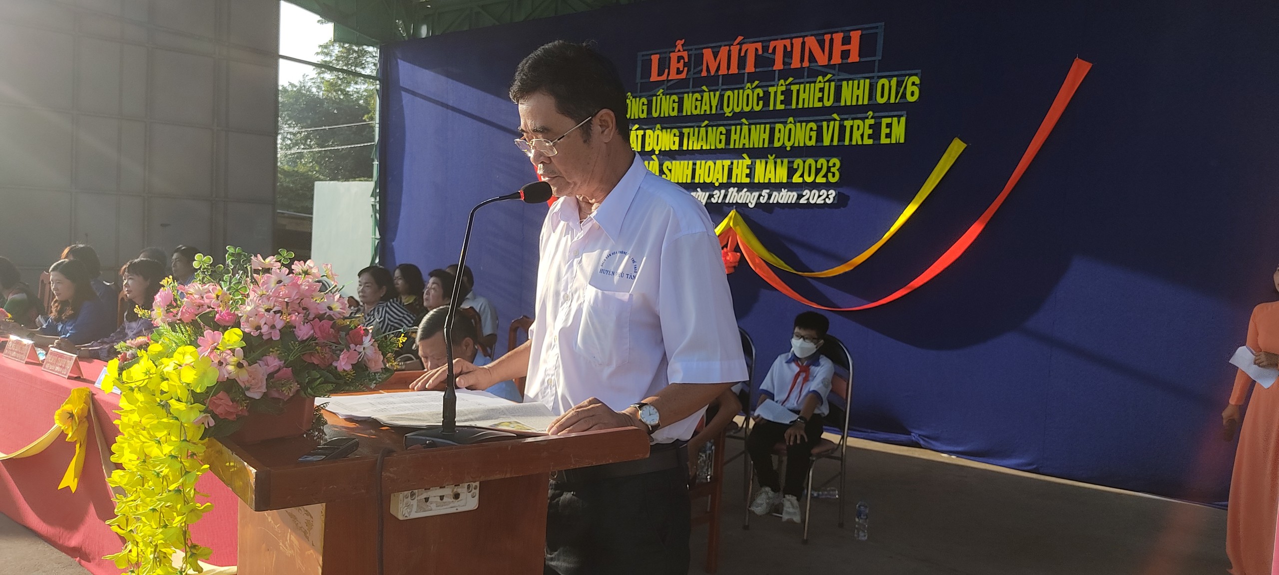 Tại buổi lễ, các đại biểu được nghe tuyên truyền ý nghĩa ngày Quốc tế Thiếu nhi 01/6, phát động Tháng hành động vì trẻ em và ra quân Sinh hoạt hè năm 2023. Hưởng ứng ngày Quốc tế Thiếu nhi 01/6 và Tháng hành động Vì trẻ em năm nay, Ban Tổ chức đã vận động và trao tặng 400 phần quà, với tổng trị giá 186.250.000 đồng cho trẻ em có hoàn cảnh đặc biệt (100 phân từ nguồn của Sở Lao động - Thương binh và Xã hội, trị giá 25 triệu đồng; 300 phần từ nguồn vận động của Hội Bảo trợ NTT-TMC-BNN huyện, trị giá 161.250.000 đồng).