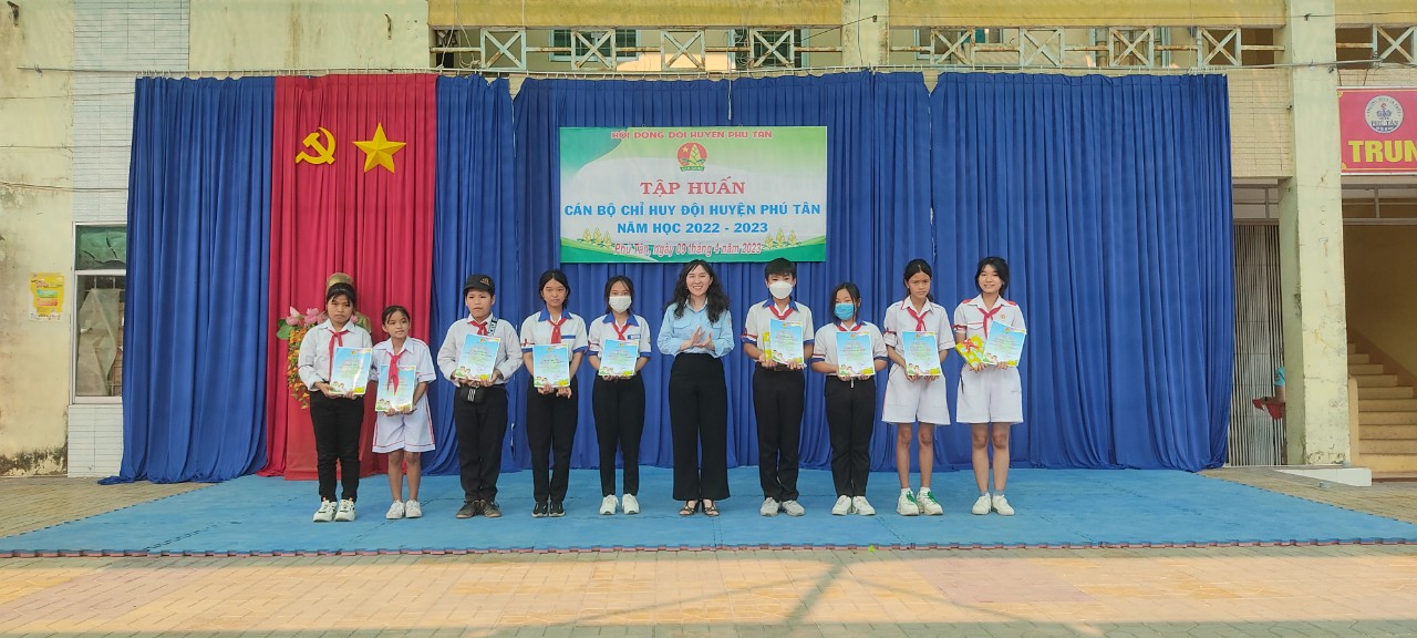Ngày 09/4/2023, tại trường THCS&THPT Phú Tân, Hội đồng Đội huyện phối hợp Phòng Giáo dục và Đào tạo huyện tổ chức Lớp tập huấn cán bộ Chỉ huy Đội huyện Phú Tân, năm học 2022 - 2023. Tham gia lớp tập huấn có 90 Đội viên đến từ 45 Liên Đội trường Tiểu học, THCS trên địa bàn huyện.