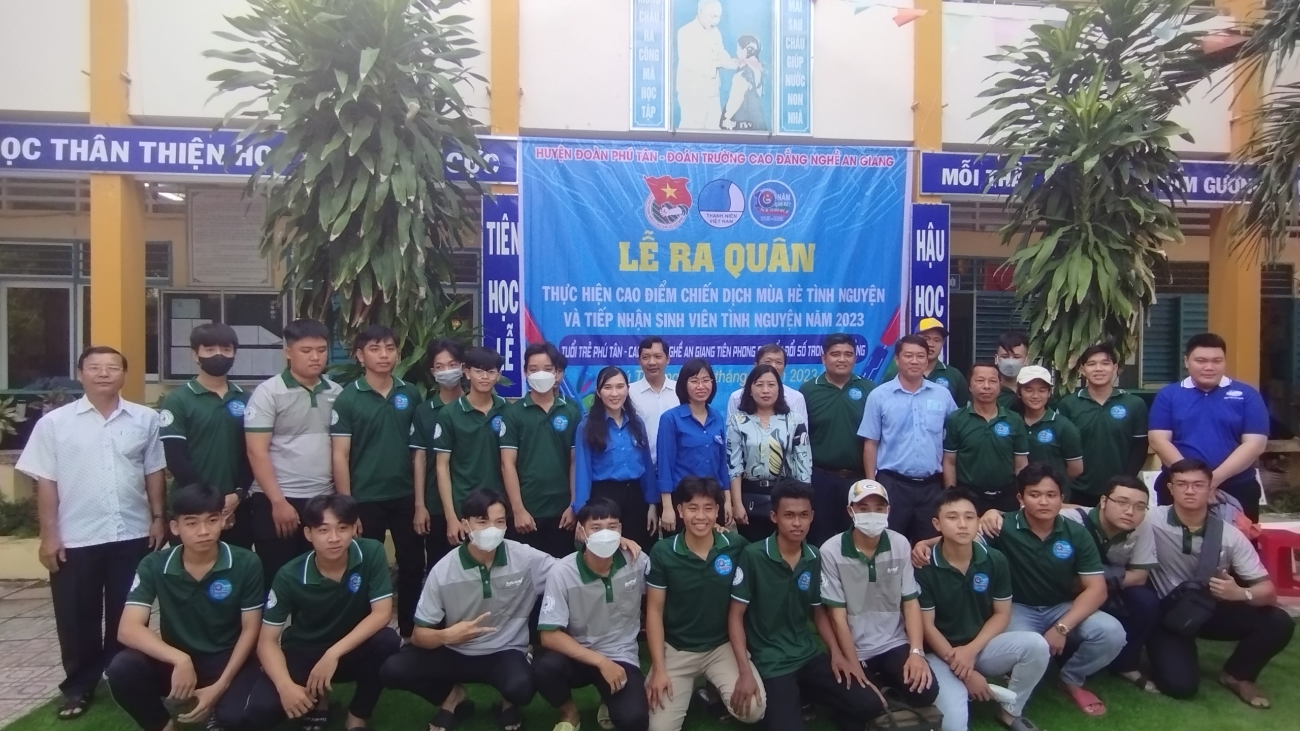 Theo đó, Chiến dịch Mùa hè tình nguyện năm nay, Huyện Đoàn Phú Tân tiếp nhận 70 sinh viên tình nguyện trường Cao đẳng Nghề An Giang về hoạt động tại 03 mặt trận như: Hòa Lạc 25 sinh viên, Phú An 25 sinh viên và Phú Hưng 20 sinh viên. Ngoài ra, năm 2023 cũng là năm đánh dấu tròn 10 năm sinh viên trường Cao đẳng Nghề An Giang về hoạt động tình nguyện tại huyện.