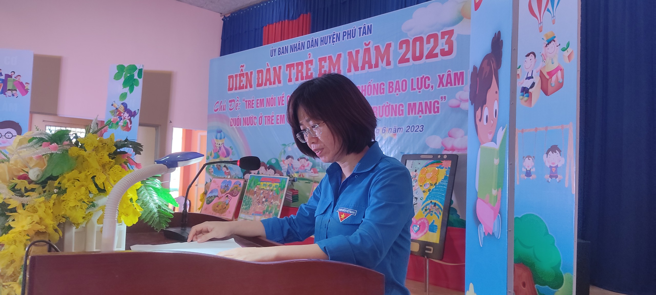 Với chủ đề “Trẻ em nói về các vấn đề phòng chống bạo lực, xâm hại, đuối nước ở trẻ em và an toàn trên môi trường mạng”, ngày 30/6/2023 tại Trung tâm văn hóa và học tập cộng đồng xã Tân Hòa, Huyện Đoàn - Hội đồng Đội huyện Phú Tân phối hợp các ngành liên quan tổ chức Diễn đàn trẻ em huyện Phú Tân năm 2023.