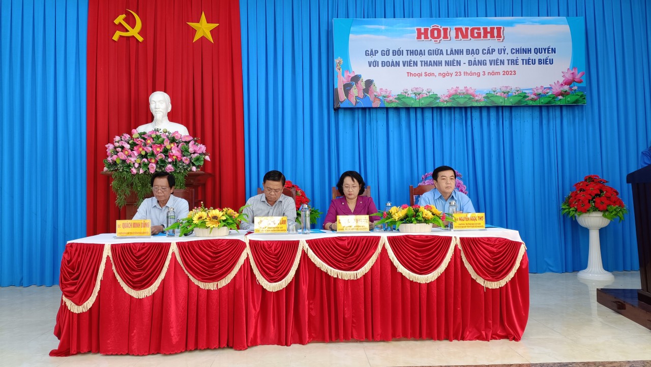 Sáng ngày 23/03/2023, Huyện Thoại Sơn tổ chức Hội nghị gặp gỡ, đối thoại giữa Cấp ủy, Chính quyền với Đoàn viên, thanh niên, Đảng viên trẻ trên địa bàn huyện. Đồng chí Nguyễn Thị Minh Kiều - Bí thư Huyện ủy, đồng chí Dương Ngọc Lắm - Phó Bí thư Huyện ủy, Chủ tịch UBND huyện cùng Lãnh đạo UBND huyện, Ban Dân vận, Huyện Đoàn, các ban ngành liên quan đã đến dự và tham gia đối thoại.