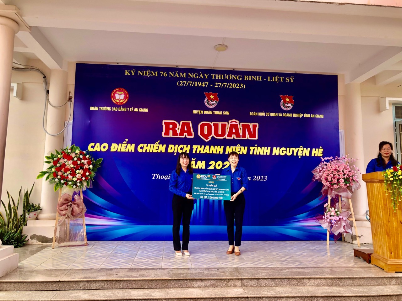 Sáng ngày 24/6/2023 tại Ủy ban Nhân dân thị trấn Phú Hoà, Huyện Đoàn Thoại Sơn, Đoàn khối Cơ quan và Doanh nghiệp tỉnh và Đoàn trường Cao đẳng y tế An Giang phối hợp tổ chức Ra quân cao điểm Chiến dịch Thanh niên Tình nguyện hè 2023.
