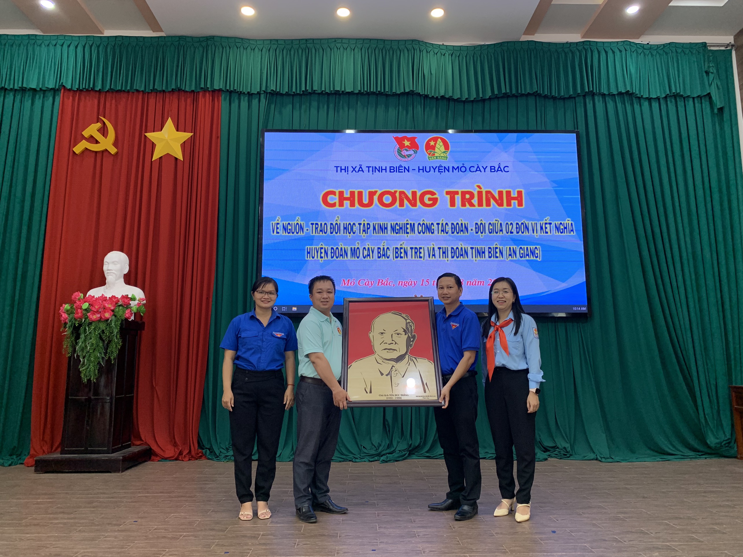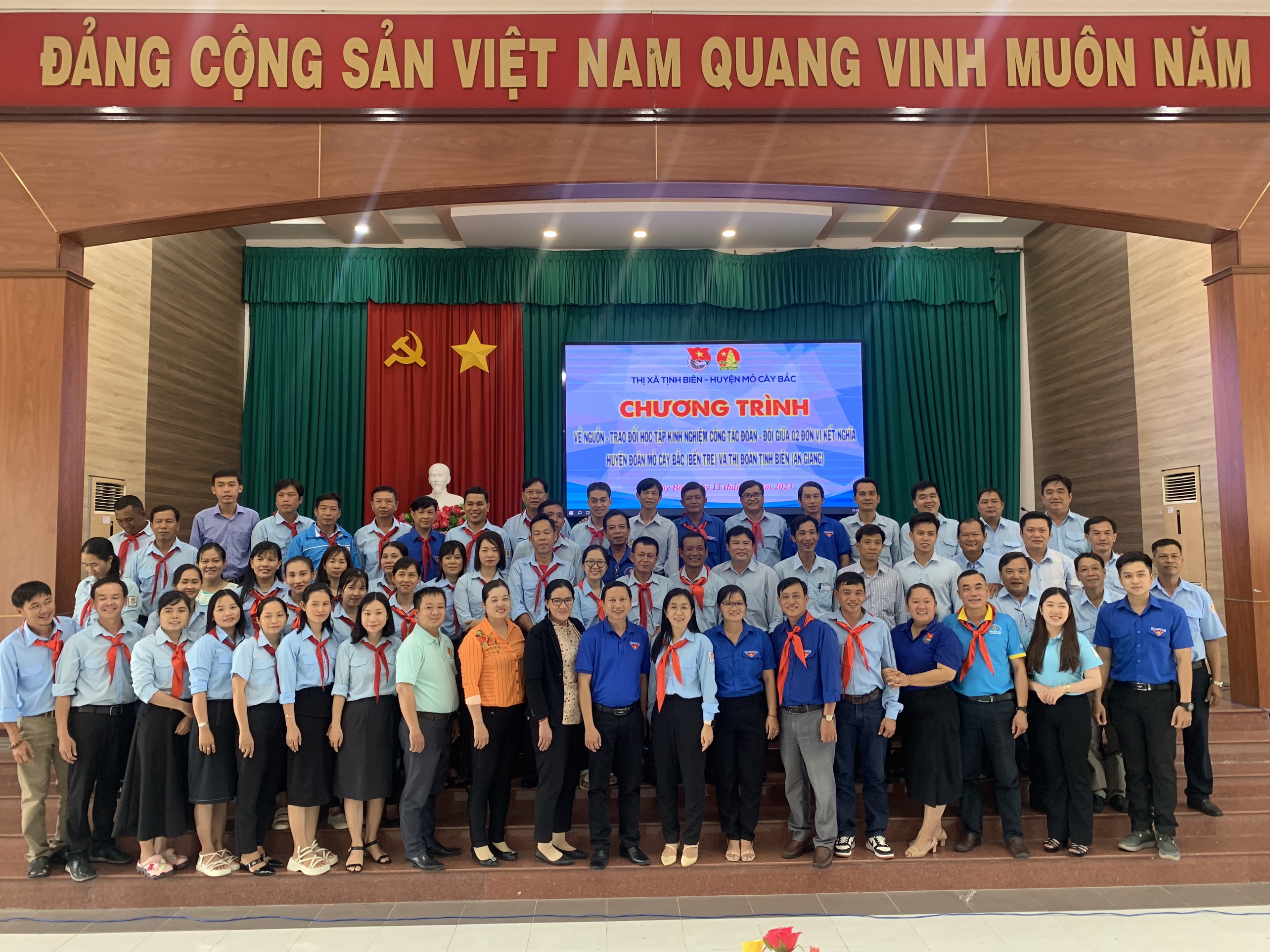 Thiết thực chào mừng kỷ niệm 135 năm Ngày sinh Chủ tịch Tôn Đức Thắng (20/8/1888-20/8/2023), Ban thường vụ Thị Đoàn, Hội đồng Đội thị xã Tịnh Biên tổ chức “Hành trình về địa chỉ đỏ” tại khu di tích căn cứ Khu uỷ Sài Gòn - Gia Định tại xã Tân Phú Tây, huyện Mỏ Cày Bắc, tỉnh Bến Tre và giao lưu, học tập kinh nghiệm về chuyên môn nghiệp vụ; tăng cường mối quan hệ đoàn kết, hỗ trợ nhau cùng tiến bộ với Huyện Đoàn Mỏ Cày Bắc.