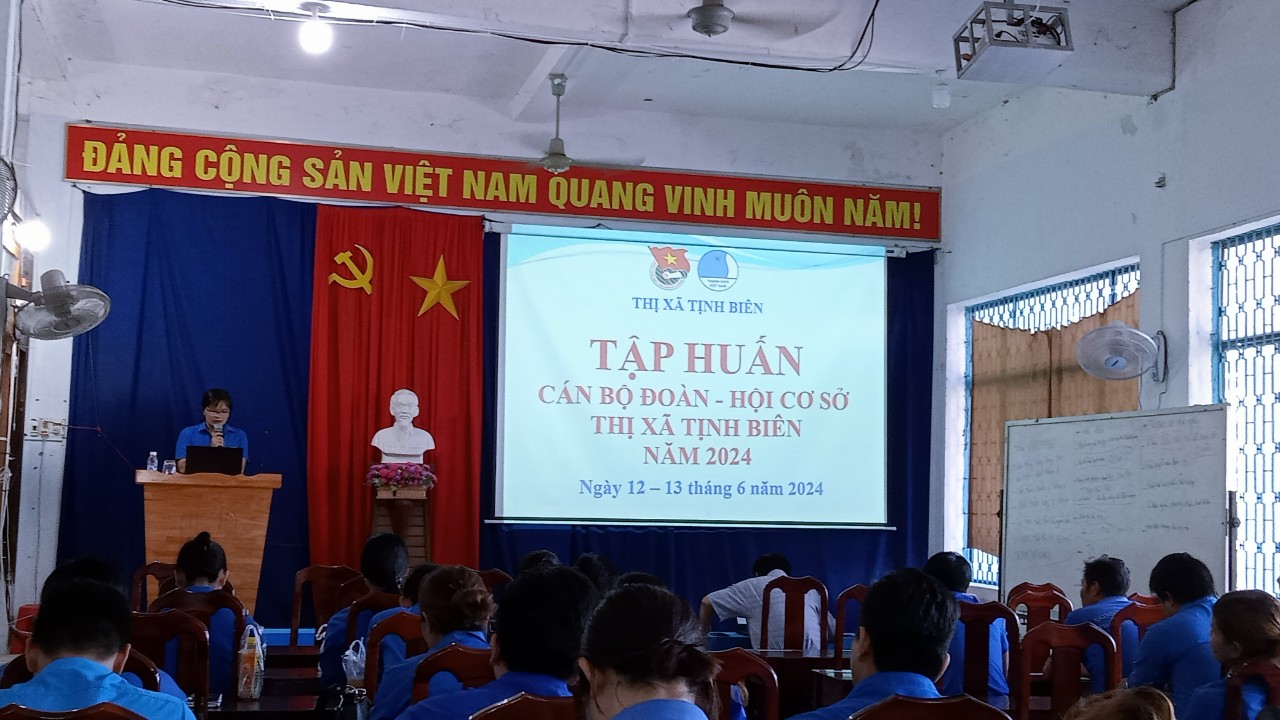 Ngày 12 - 13/6/2024, Ban Thường vụ Thị Đoàn - Uỷ ban Hội LHTN Việt Nam thị xã Tịnh Biên phối hợp với Trung tâm Chính trị thị xã tổ chức lớp tập huấn cán bộ Đoàn - Hội cở sở năm 2024 cho 90 Đoàn viên, hội viên trên địa bàn toàn thị xã.