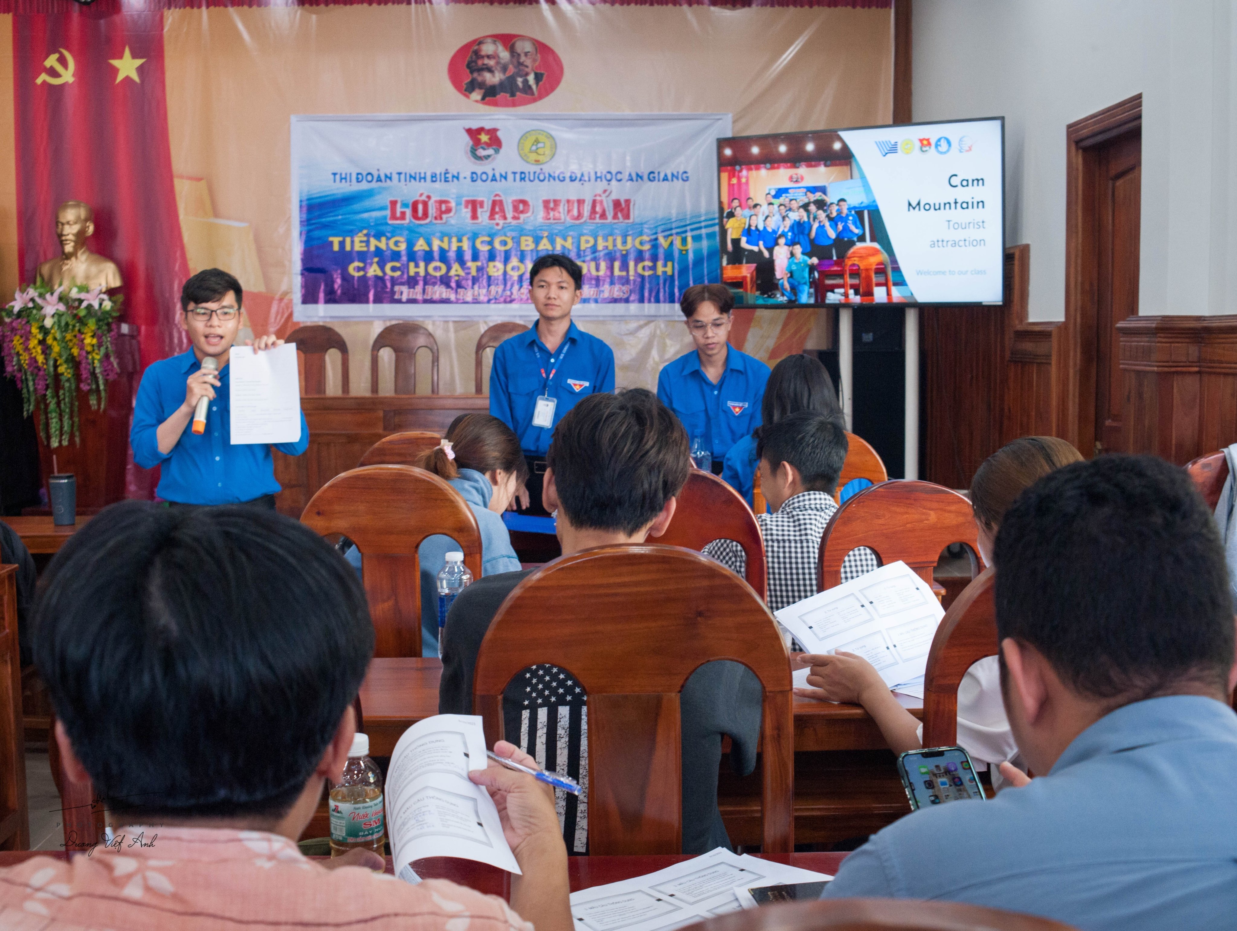 Ban Thường vụ Thị Đoàn Tịnh Biên phối hợp cùng Ban Chấp hành Đoàn Trường Đại học An Giang tổ chức Lớp tập huấn tiếng Anh cơ bản phục vụ các hoạt động du lịch cho các cán bộ, nhân viên, Đoàn viên, thanh niên hoạt động trong lĩnh vực du lịch tại khu du lịch Núi Cấm, xã An Hảo, thị xã Tịnh Biên.