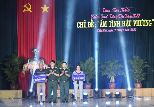 Chương trình đêm văn nghệ “Ấm tình hậu phương” do Trung tâm Văn hóa, thể thao và truyền thanh huyện Châu Phú đảm nhiệm và biểu diễn thành công tốt đẹp. Ngay trong đêm, Trung đoàn đã vận động các nhà hảo tâm, các tổ chức và cá nhân được hơn 200 triệu đồng. Riêng Ban Trị sự Trung ương Giáo hội Phật giáo Hòa Hảo hỗ trợ 5 căn nhà, mỗi căn trị giá 30 triệu đồng.
