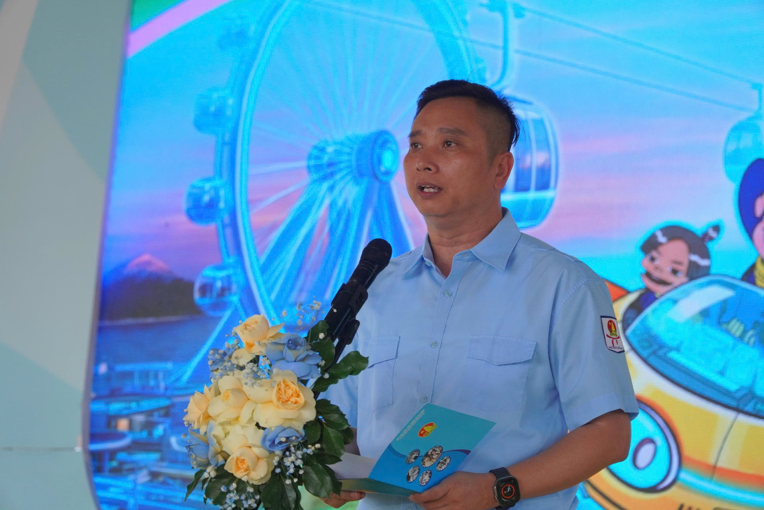 Đồng chí Lê Anh Quân, Phó Chủ tịch Hội đồng Đội Trung ương, Giám đốc Trung tâm Hỗ trợ và Phát triển Thiếu nhi Việt Nam phát biểu tại Ngày hội