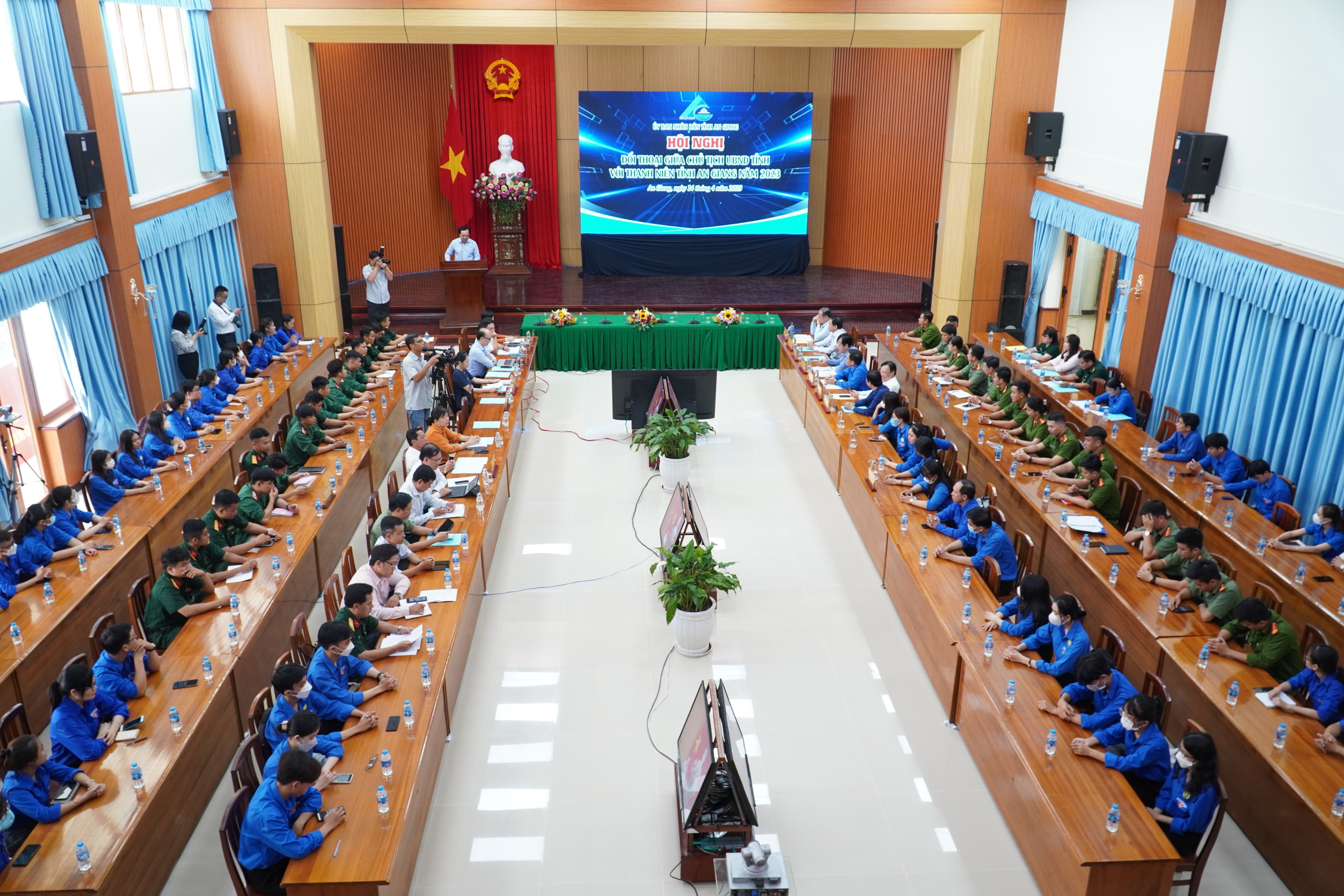 Hội nghị được Chủ trì bởi đồng chí Nguyễn Thanh Bình, Phó Bí thư Tỉnh ủy, Chủ tịch Ủy ban Nhân dân tỉnh An Giang với chủ đề: “Thanh niên An Giang tham gia thực hiện Chuyển đổi số, thúc đẩy phát triển kinh tế số, xã hội số” và được kết nối trực tuyến với 11 điểm cầu trong toàn tỉnh; cùng tham dự Chương trình có các đồng chí đại diện các Ban xây dựng Đảng; các Sở, Ngành cấp tỉnh; đại biểu đại diện lãnh đạo Sở Nội Vụ, Văn phòng UBND tỉnh, Tỉnh Đoàn; đại diện các cơ quan thống tân, báo chí, cùng 100 đại biểu thanh niên; tại các điểm cầu trực tuyến, có các đại biểu là thường trực huyện, thị, thành ủy, lãnh đạo Hội đồng nhân dân, Uỷ ban Nhân dân, lãnh đạo các cơ quan chuyên môn cấp huyện, lãnh đạo Ủy ban nhân dân cấp xã của 11 huyện, thành phố, thị xã trong toàn tỉnh và hơn 1.000 thanh niên.