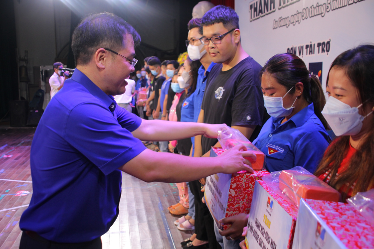 Đồng chí Phan Duy Bằng – Phó Bí thư Tỉnh Đoàn tặng quà cho thanh niên công nhân bị ảnh hưởng sau đại dịch COVID-19