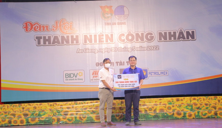 Công ty TNHH TCPVN tặng 300 thùng nước tăng lực cho Tỉnh Đoàn An Giang