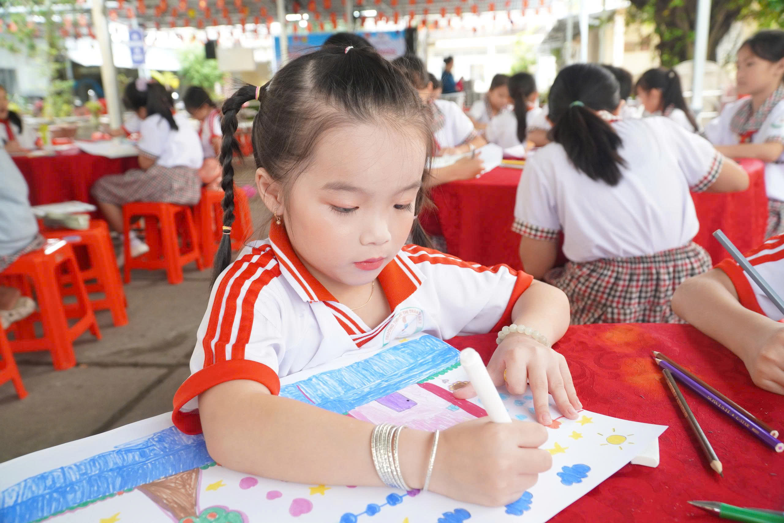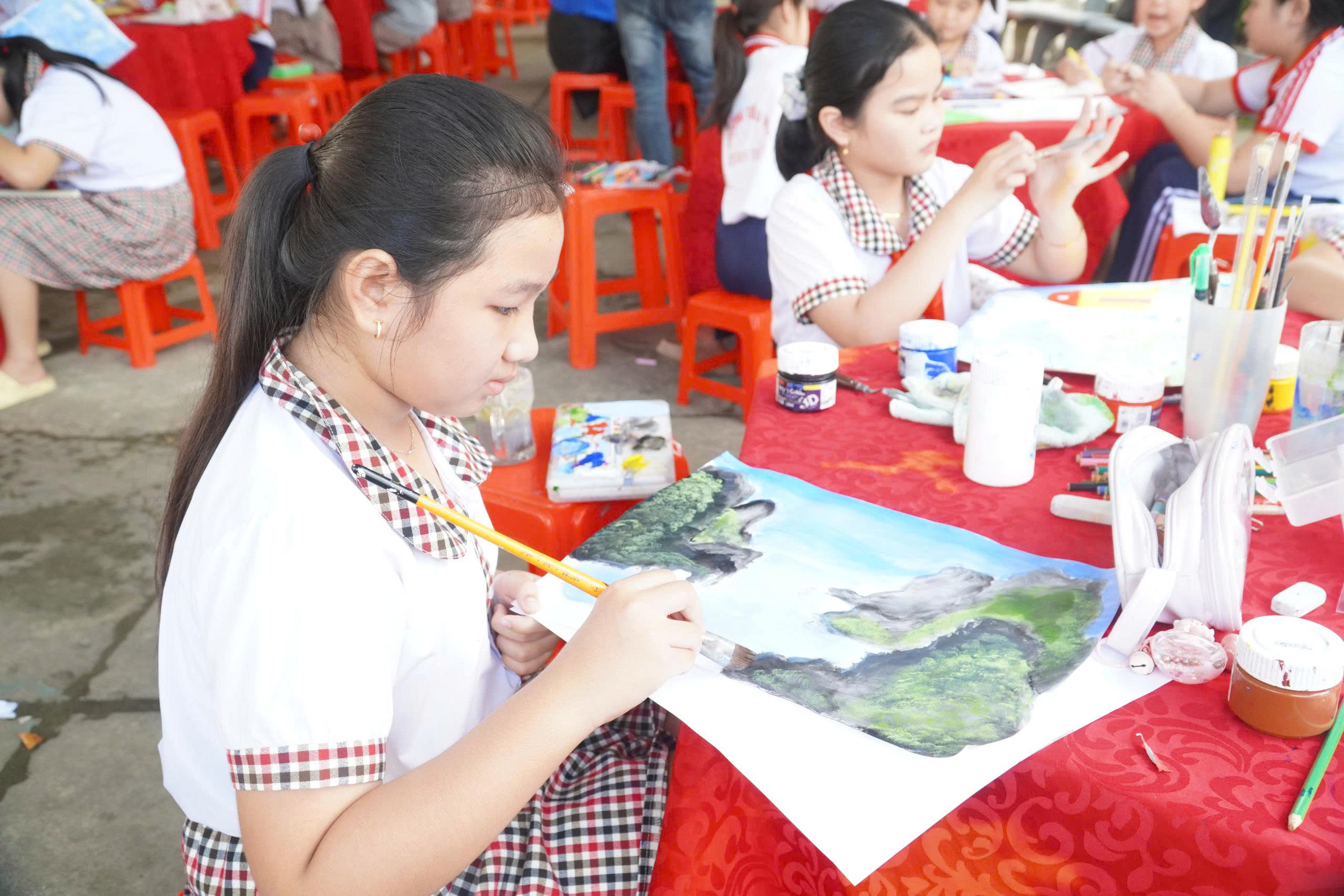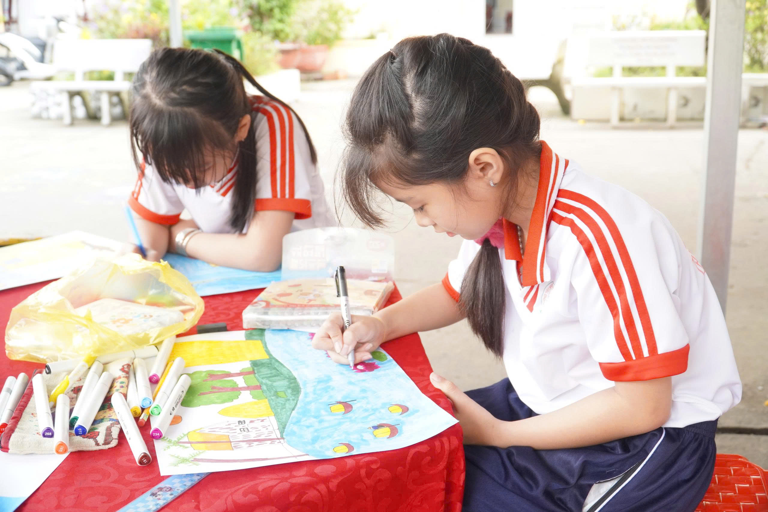 Hình ảnh các em tham gia Hội thi vẽ tranh tại Ngày hội
