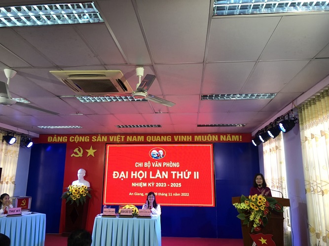 Phát biểu chỉ đạo tại Đại hội, đồng chí Quang Lê Hồng Chuyên - Ủy viên BTV Đảng ủy Cơ quan thay mặt Đảng ủy Cơ quan Tỉnh đoàn chúc mừng, ghi nhận và đánh giá cao những kết quả của Chi bộ Văn phòng đạt được trên tất cả các lĩnh vực công tác trong nhiệm kỳ 2020 - 2022. Nhất trí với phương hướng, nhiệm vụ Chi bộ Văn phòng đã nêu trong báo cáo chính trị. Đồng thời, đồng chí đề nghị Chi ủy Chi bộ Văn phòng cần phát huy hơn nữa những ưu điểm, làm tốt công tác chính trị tư tưởng, mỗi đảng viên trong Chi bộ phải là tấm gương chuẩn mực trong từng hành vi, từng phát ngôn, phấn đầu hoàn thành nhiệm vụ được giao để tiếp tục giữ vững danh hiệu Chi bộ trong sạch vững mạnh.