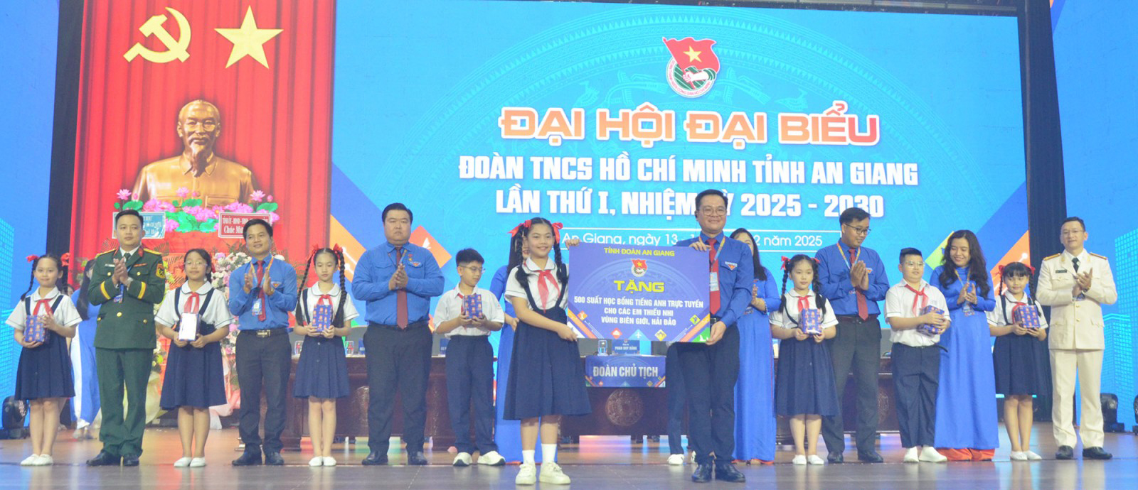 Tỉnh đoàn An Giang trao bảng tương trưng tặng 500 suất học bổng tiếng Anh trực tuyến cho thiếu nhi vùng biên giới, hải đảo.
