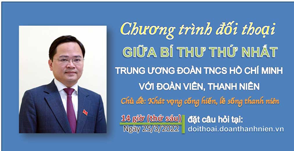 Ngày 25/03 tới đây, Bí thư thứ nhất T.Ư Đoàn sẽ đối thoại với thanh thiếu nhi trong và ngoài nước với chủ đề “Khát vọng cống hiến, lẽ sống thanh niên”.