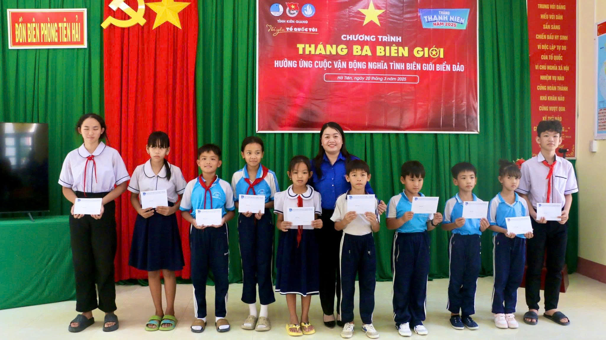 Ngày 20/3, trong khuôn khổ Chương trình Tháng Ba biên giới năm 2025, Tỉnh đoàn đã tổ chức Chương trình Hành trình “Nghĩa tình biên giới hải đảo” tại xã Tiên Hải, thành phố Hà Tiên. Chương trình diễn ra với nhiều hoạt động thiết thực, thể hiện sự quan tâm, chăm lo hậu phương quân đội đối với cán bộ, chiến sĩ và gia đình đang ngày đêm gìn giữ chủ quyền vùng biển, hải đảo của Tổ quốc.