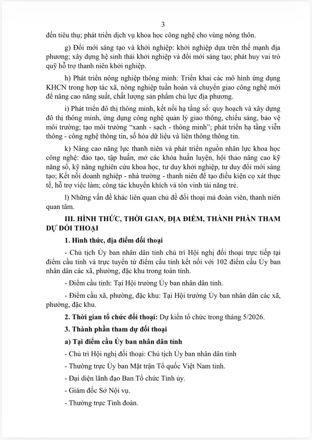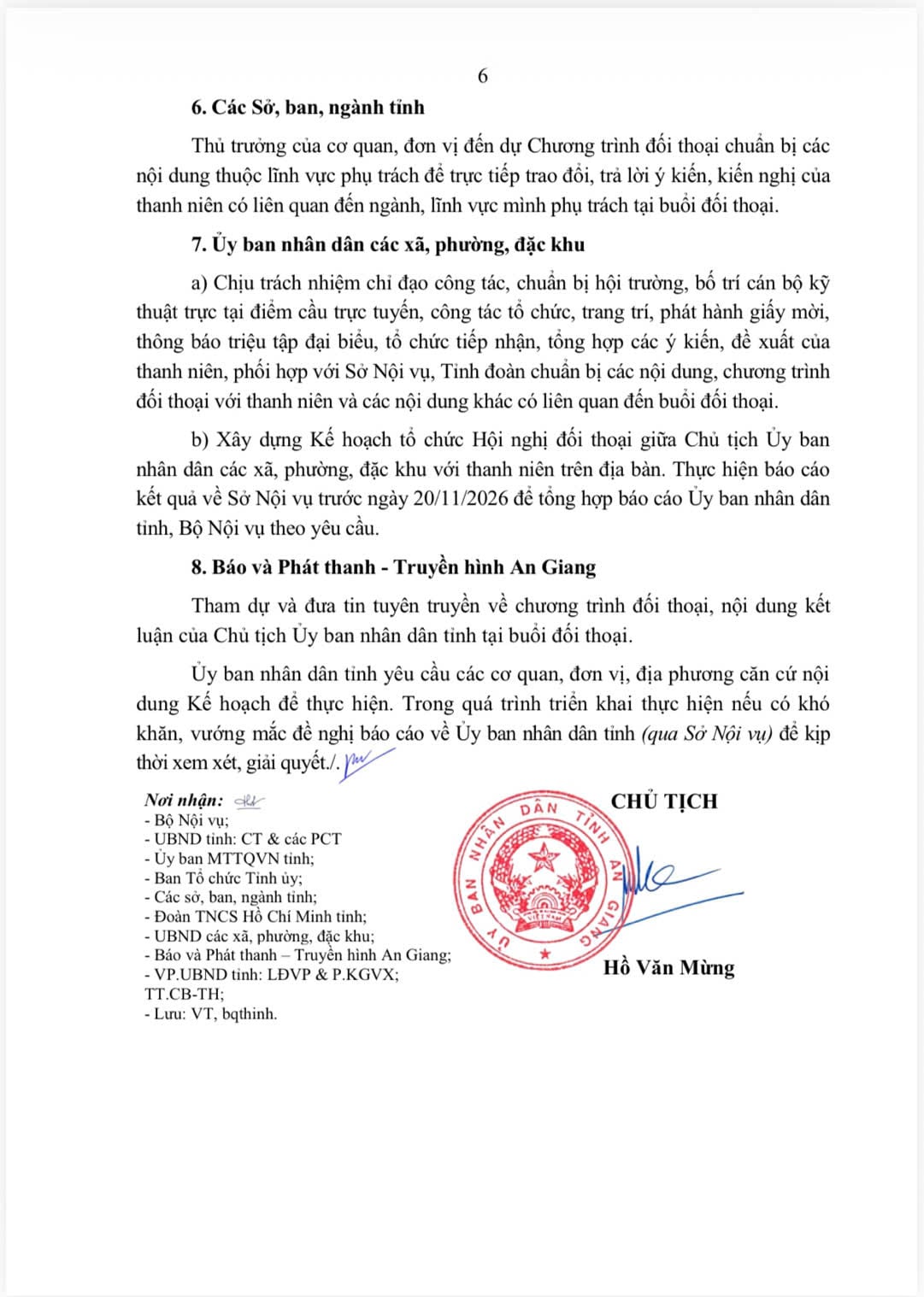 Kế hoạch Tổ chức Hội nghị đối thoại giữa Chủ tịch Ủy ban nhân dân tỉnh với thanh niên tỉnh An Giang năm 2026