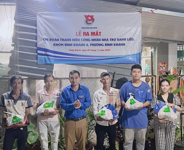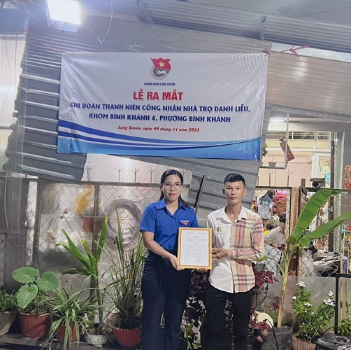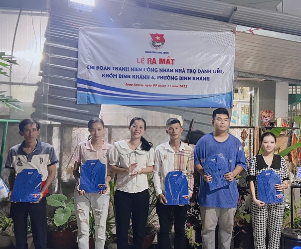 Tối ngày 09/11/2022, tại nhà trọ Danh Liễu đã tổ chức “Lễ ra mắt Chi đoàn thanh niên công nhân nhà trọ Danh Liễu” tại khóm Bình Khánh 6, phường Bình Khánh, thành phố Long Xuyên với sự tham dự của đồng chí Trần Thị Lài - Phó Ban Tổ chức Kiểm tra Tỉnh Đoàn, Thành Đoàn Long Xuyên, Đảng ủy phường Bình Khánh, thành phố Long Xuyên, đại diện chủ nhà trọ Danh Liễu cùng khoảng 30 đoàn viên thanh niên phường Bình Khánh.