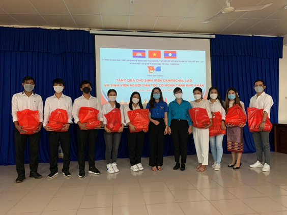 Sáng ngày 25/3/2022, Tỉnh đoàn - Hội Liên hiệp Thanh niên Việt Nam tỉnh đã tổ chức họp mặt và trao tặng quà cho sinh viên Lào, Campuchia và sinh viên người dân tộc có hoàn cảnh khó khăn tại trường Đại học An Giang.