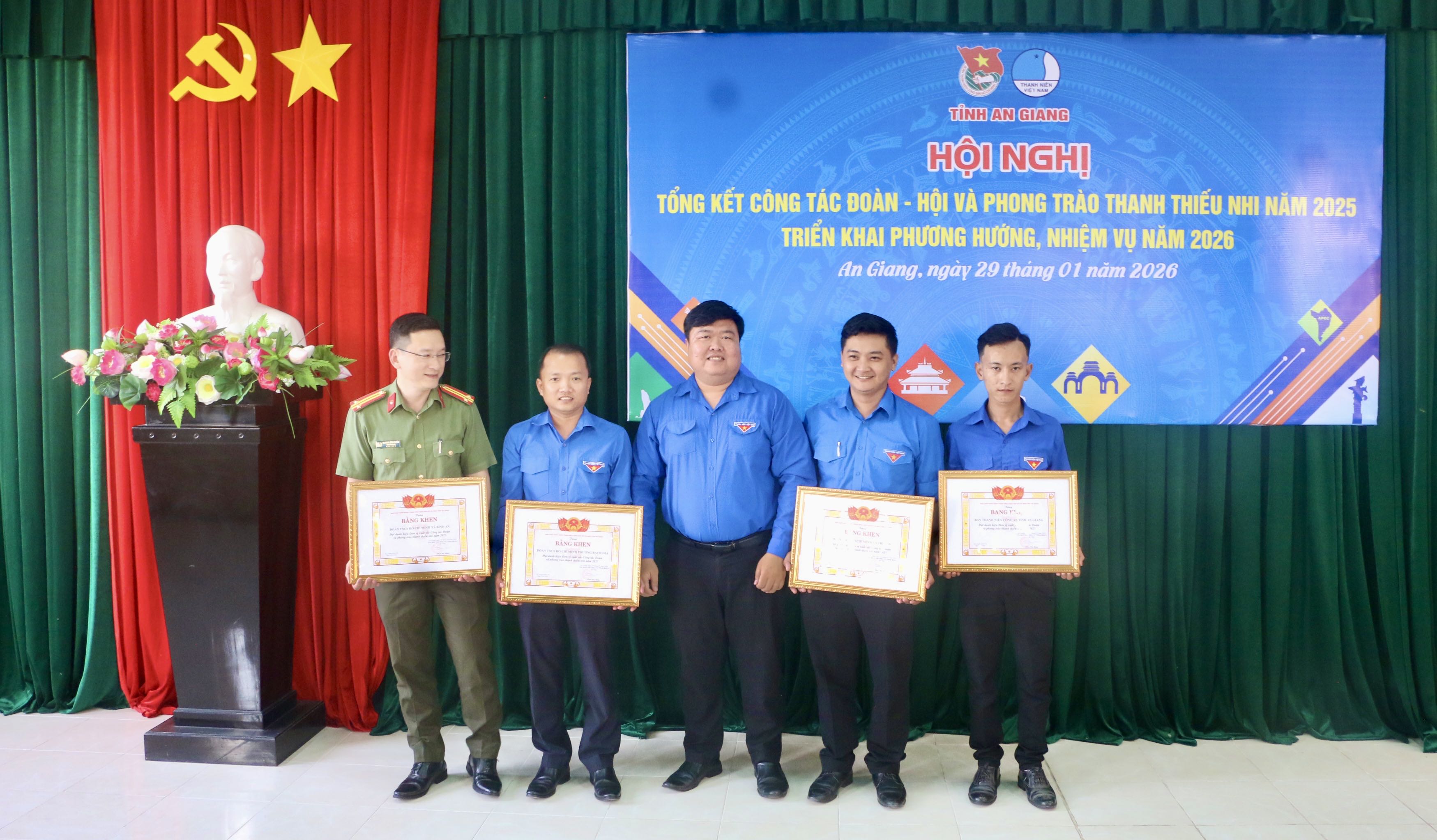 Dịp này, Ban Thường vụ Tỉnh đoàn đã khen thưởng 21 đơn vị đạt danh hiệu “Đơn vị xuất sắc Công tác Đoàn và phong trào thanh thiếu nhi năm 2025”, nhằm ghi nhận những nỗ lực, cố gắng của các đơn vị và tạo động lực để các cấp bộ Đoàn tiếp tục phát huy vai trò tiên phong, xung kích, sáng tạo trong thời gian tới.