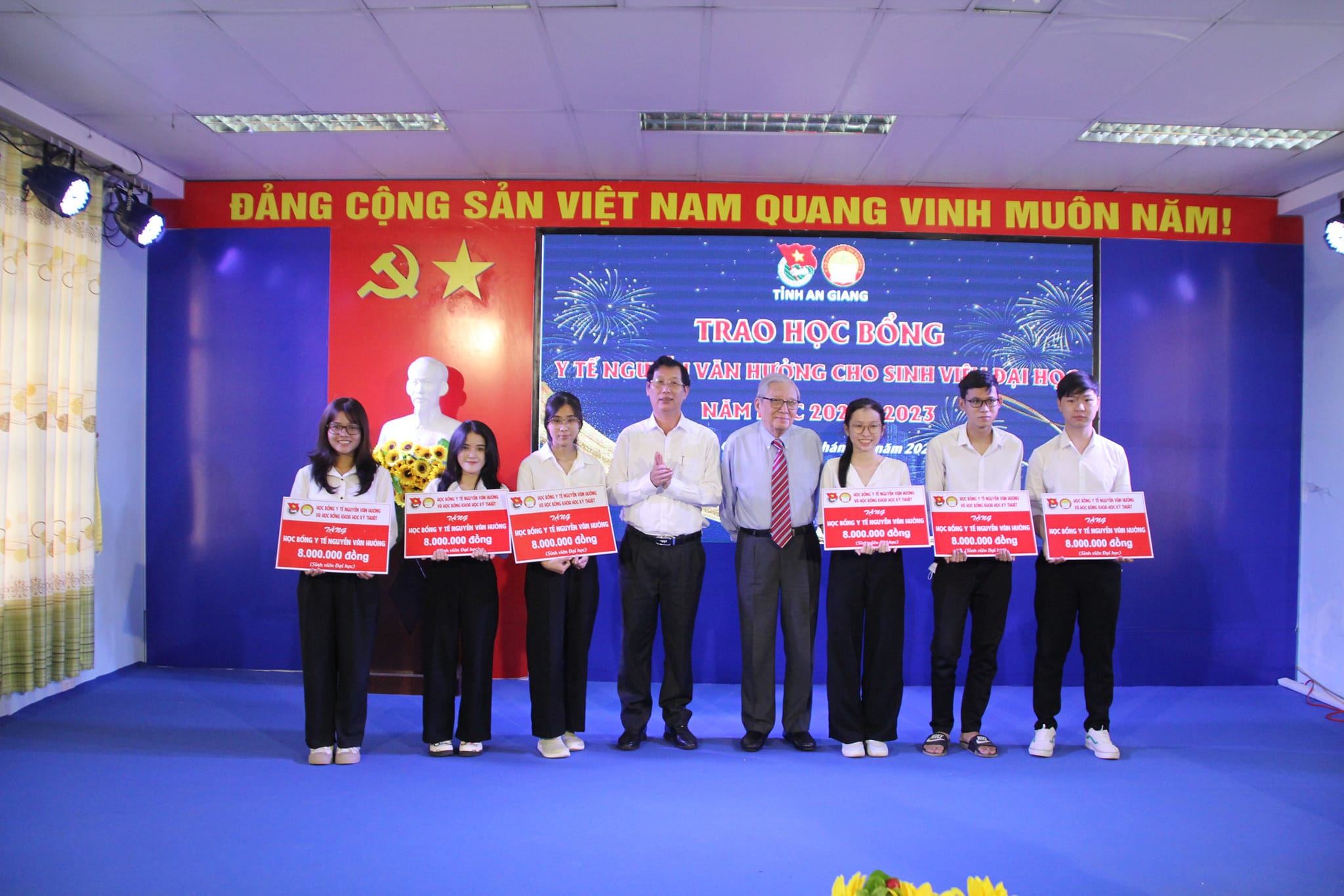Đây là năm thứ 25, Học bổng Y tế Nguyễn Văn Hưởng và Học bổng Khoa học kỹ thuật đồng hành cùng sinh viên An Giang có hoàn cảnh khó khăn, đang theo học các ngành thuộc lĩnh vực y học và khoa học kỹ thuật, với 885 suất học bổng, tổng kinh phí 2.441.650.000 đồng, đã được trao cho các sinh viên.