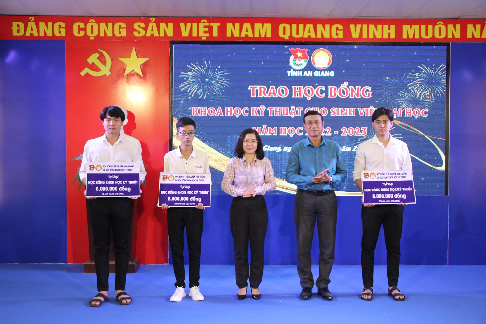 Chiều 13/1, GS.TS Khoa học Nguyễn Ngọc Trân, Hội Khuyến học tỉnh An Giang và Ban Thường vụ Tỉnh đoàn An Giang tổ chức lễ trao Học bổng Y tế Nguyễn Văn Hưởng và Học bổng Khoa học kỹ thuật năm học 2022- 2023.