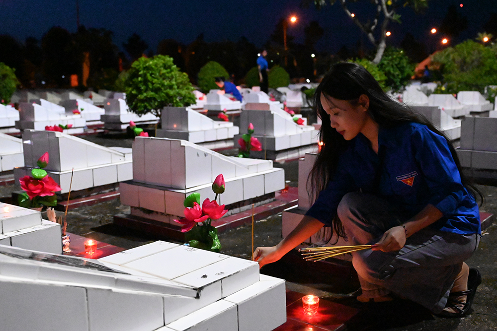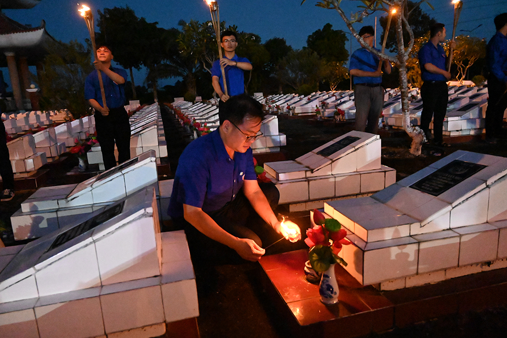 Đoàn viên thắp nến tại các phần mộ liệt sĩ