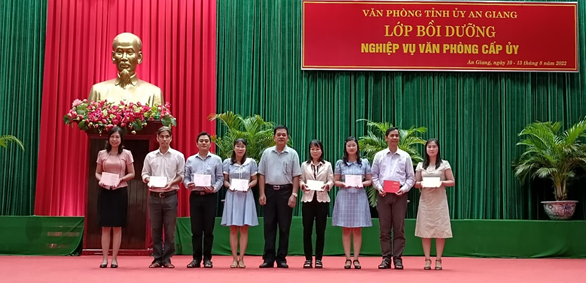 Từ ngày 10/8 đến 13/8/2022 tại Hội trường Tỉnh ủy An Giang, văn phòng Tỉnh Đoàn An Giang tham gia Lớp bồi dưỡng nghiệp vụ văn phòng cấp ủy do Văn phòng Tỉnh ủy An Giang phối hợp Văn phòng Trung ương Đảng tổ chức.