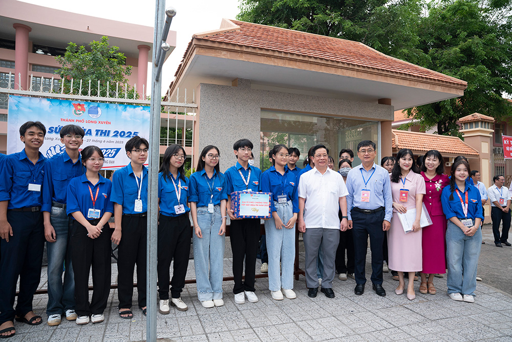 Sáng ngày 26/6/2025, Lãnh đạo UBND tỉnh, Sở Giáo dục và Đào tạo cùng với Ban Thường vụ Tỉnh Đoàn đã tổ chức các đoàn công tác đến điểm thi tại Trường THPT Chuyên Thoại Ngọc Hầu và THPT Nguyễn Hiền để kiểm tra công tác chuẩn bị, động viên tinh thần các thí sinh và trao tặng quà cho đội hình thanh niên tình nguyện đang làm nhiệm vụ tại các điểm thi. Tại mỗi nơi đến, lãnh đạo tỉnh đã ân cần thăm hỏi, tặng quà, ghi nhận tinh thần trách nhiệm, sự nhiệt huyết và những đóng góp thiết thực của lực lượng đoàn viên, thanh niên, sinh viên trong công tác hỗ trợ thí sinh và người nhà trong suốt mùa thi.