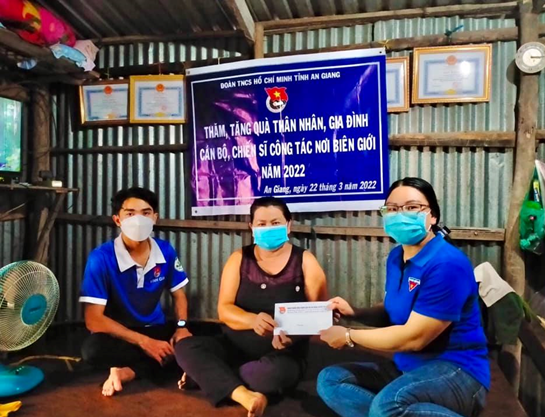 Sáng ngày 22/3/2022, Ban Thường vụ Huyện Đoàn Tri Tôn đăng cai cấp tỉnh thực hiện hoạt động thăm, tặng quà thân nhân, gia đình cán bộ, chiến sĩ công tác nơi biên giới tại xã Vĩnh Gia. Tại buổi đến thăm, Huyện đoàn đã trao tặng 10 phần quà trị giá 05 triệu đồng