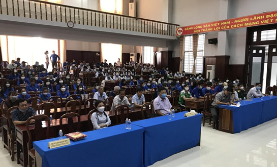 Đông đảo đoàn viên thanh niên, học sinh trên địa bàn huyện Tịnh Biên đến nghe thông tin tình hình về biển, đảo.